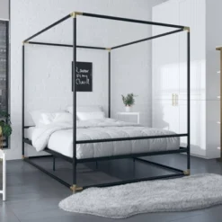 10″ Modernista Classic Metal Platform Bed With Headboard Black – Mellow