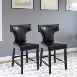 Set Of 2 Kings Counter Height Barstool With Studded Bonded Leather Seat – Corliving