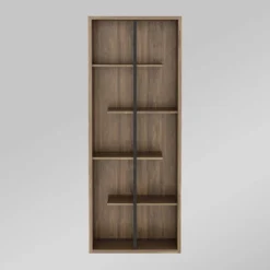 L Shape Industrial Desk With Storage Shelves Walnut – Techni Mobili