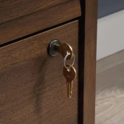 Looking for a solution for your unorganized mess of papers? Look no further! Create the additional storage space your home office needs while adding the style that you love with this lateral file cabinet from the Englewood® collection. This 2 drawer file cabinet features two large drawers with full extension slides that can hold letter or legal size hanging files so you can have a place for all your important documents. The patented, interlocking safety mechanism only allows one drawer to open at a time for extra safety precautions. The drawers also lock for secure storage options. The upper drawer features a louver detailed front for an extra touch of style that is sure to stand out. The top features a strong and lightweight 1″ panel construction and offers a spacious surface to store and display different things like decorative plants, a wireless printer, work binders, and framed photos of your family. Finished in Spiced Mahoganyâ„¢, this good-looking wood lateral file cabinet will have you feeling organized in no time!