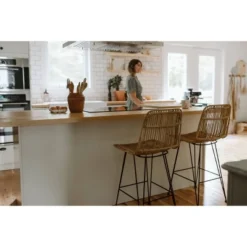 - SET OF TWO: Add these chairs to your kitchen island, your counter, or even your home bar! You’ll have a space that brings people together – perfect for day to day chitchat and more festive nights.HAND WOVEN: These bohemian chairs made of rattan will be the envy of all your guests! The blend of textures – hand woven rattan seat and metal hairpin legs – is simply stunning. And each stool is made by hand, for a unique look.ERGONOMIC: You’ll be able to stay sitting for hours! The seat provides excellent back support, and the metal rods on the legs can be used as footrests. You’ll be sitting in ergonomic comfort!STURDY: The metal legs on these chairs are very stable – they certainly won’t tip over. Plus, each leg is rubber capped to protect your beautiful floors. We thought of everything!FREE SWATCH AVAILABLE: Contact our consumer service today at 1-800-290-0465 or send an email to [email protected] is required by 2 adults and tools are not included. If you have questions regarding this product or need assistance do not hesitate to contact South Shore Furniture 7 days support. You can reach customer support by phone at 1.800.290.0465 or you may chat with an agent live at: www.southshorefurniture.com