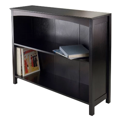 Bring simple charm to your interiors and transform your space with the Terrace 2-Shelf Bookshelf from Winsome. Featuring two spacious shelves to tuck away your journals, novels, decorative figurines or family photographs, this two-tier bookshelf makes a functional and stylish pc for smaller spaces. Decorated with a classic espresso finish with slightly arched details under the tabletop, this small bookcase brings a traditional flair to your space.