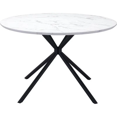 A classic round table, the Lois Table fits any mid century modern space, perfect for any space, dining, work, or open plan. The top is a durable MDF laminate top with a marble print and steel legs powder coated in black.
