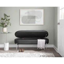 The Chloe Storage Bench by LumiSource provides convenient storage along with a stylish look. Perfect for extra seating, an entryway, or at the foot of a bed, the Chloe Storage Bench features sleek faux leather upholstery accented by a luminous chrome metal base. Open the flip-top lid to find a roomy storage area where you can conveniently hide magazines, remote controls, and anything else you want to keep out of sight. Available in a variety of colors, choose the one that fits your glam area the best!