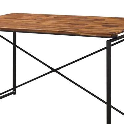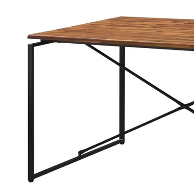 - This industrial design table is both functional and elegant, thanks to the additional support provided by metal cross bars on its base.
