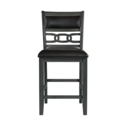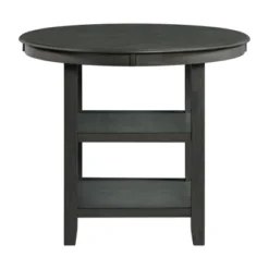 The Picket House Furnishings Taylor Counter 5PC Dining Set in Gray will look fantastic in your home! This set includes a table and four side chairs. This set is ideal for small space living allowing you to easily move around the round table top. The table also comes with a shelf in the base for placing home décor and instantly add extra flair to this already stylish set. The chair backs and seats are upholstered in a black, faux leather, that pairs beautifully with the gray finish. Another cool design feature, the chairs have a link design in the back taking this set to the next level. Add this dining set to your home today for a look you’ll enjoy day after day!