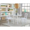 The Lifestorey 5 Piece Trita Round Dining Table Set is defined by its minimal yet expressive Mid-century modern design. Sleek architectural outward angled legs and sloped chair backs are constructed of solid rubberwood emphasizing style and sophistication. Accented with a resilient tempered round glass top, which enhances the see-thru design component of the unique table base, the four chairs are upholstered in a soft light Gray linen-look fabric. Finished in a rich walnut, this set seats up to four comfortably, easily complementing any dining interior.