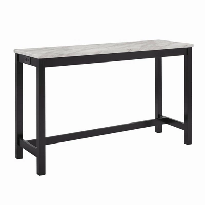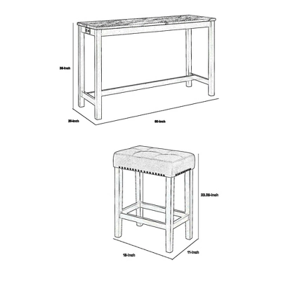Bring the style and sophistication of the world’s finest bars and eateries to your home with this stunning bar table set from the Kate Collection. The centerpiece of the set is a sleek, rectangular faux marble accented countertop. Complimented by three blue velvet upholstered, memory foam padded stools, all lined with a striking and unique nailhead trim, this four piece collection will undoubtedly add a touch of boldly understated class to any room in your house.