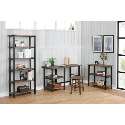 Pomona 5 Shelf Bookcase Metal and Solid Wood Natural by Alaterre Furniture encompasses a rustic natural finish and design provide a stylish element to your room. At over 5.5ft. tall, our solid birch wood bookcase with strong black metal legs offers modern farmhouse style to display your books and favorite decorative items. Natural wood variations such as cracks, knots add to the piece’s character. The exquisite workmanship of solid wood tops with metal legs create a piece that will last for years to come.
