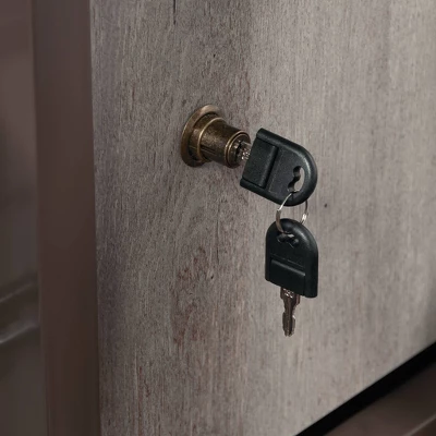 Storage with limited space in mind. Add style while considering the space in your home with this narrow bookcase from the Manhattan Gate collection. This 2-shelf narrow bookcase features two shelves to store and display books, plants, décor and more! This narrow bookcase with drawers includes two file drawers with full extension slides to hold letter-size hanging files so your most important documents are organized and free of clutter. The lower drawer of this mid-century modern bookcase locks for security, and a safety mechanism allows only one drawer to open at a time. With strong and lightweight panel construction, a wall anchor for added stability, and powder coated metal frames and pulls, this narrow bookshelf has durability as well as style in mind. Finished in Mystic Oak, this bookcase with storage upgrades your home or office with simple but elegant design.