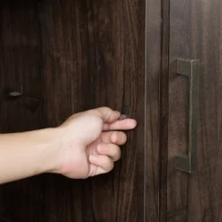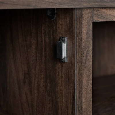 Cozy up for a relaxing evening with the Camden Low Profile TV Stand and fireplace. This TV stand looks great showcasing your television while keeping media necessities hidden away. Each cabinet features an adjustable shelf that adapts to your storage needs. With an electric firebox in the center compartment, this TV stand doubles as a modern-day hearth, able to heat approximately 400 square feet of your home. Sized to fit most TVโs up to 50 inches, the Camden Low Profile TV Stand with fireplace exudes rustic style with the look of wood-grain and substantial metal hardware.
