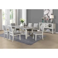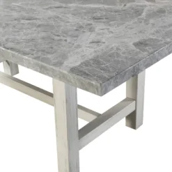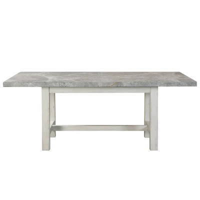 A mix of primitive styling with a beautiful gray marble top creates the casually elegant Canova Dining Table that will anchor any dining setting. The Cathedral White wood finish on the base pairs gracefully with the natural gray marble top in a neutral palette that will accent classic, contemporary or farmhouse styles. Cross-stretchers and a corner-blocked table top ensure you will enjoy this table for years to come. Your purchase includes one dining table.