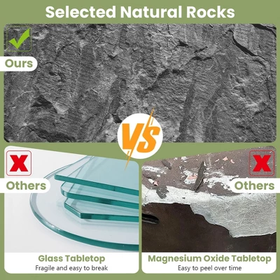 Made of high-quality natural rock, the table is sturdy and can hold up to 330 lbs