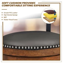 Our rustic swivel bar stool will provide you with a comfortable place to sit while adding a touch of elegance to your room layout. Made of selected rubber wood, this bar stool is durable and sturdy. The four thick flared legs with a built-in foot ring provide strong support and ensure their stability. Featuring 360-degree swivel design, this bar stool gives you the freedom of flexible movement, so you can communicate with others in any direction. Besides, PVC cushioned seat is comfortable to sit. You can put your legs on the footrest and enjoy leisure time. With its rustic appearance, our counter height bar stool is perfect for bistro, kitchen, coffee house, etc. Don’t hesitate to buy it!