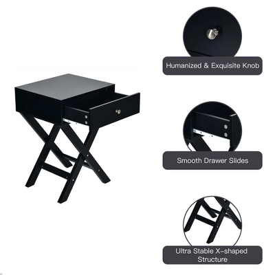 If you are looking for an attractive nightstand, our product will the best choice for you! This side table has a drawer for hidden storage and a tabletop for open storage, so there is ample space to store items. Besides, the nightstand is made of premium MDF material, which is durable for a long-term use. In order to improve the overall stability, legs of the table are specially designed in the shape of X. In addition, humanized knob and smooth drawer slides let you pull out the drawer easily. This versatile table can be placed not only as a bedside table in the bedroom, but also as a side table next to the sofa in the living room.