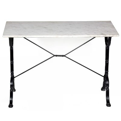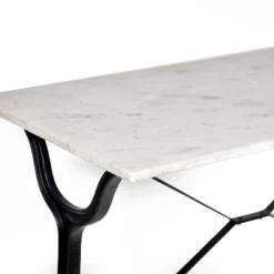 - Each piece is a unique one of a kind hand crafted cast iron metal base and white marble table top