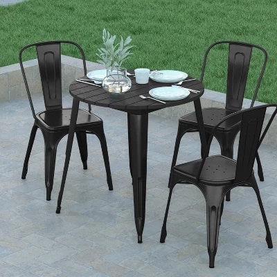 Instantly up your commercial or residential dining or lounge spaces with the upmarket look of this 30″ round indoor outdoor dining table. The slatted poly resin top paired with a steel frame lends a contemporary yet rustic look to any decor from industrial to farmhouse. Create a cozy spot to have drinks or dinner for 4 in your restaurant or pub or take the fun outdoors to your patio dining areas. Designed to stand up to the rigors of the hospitality industry, as well as busy households, this commercial table boasts a polystyrene top that will not rot, chip or peel and a 20 gauge steel frame that will hold up to 200 lbs. static weight capacity. Stainless steel hardware is rust resistant making this patio table ideal for year round use both indoors and out. Assembly takes less than 10 minutes with the included tools and cleanup is a snap with a damp cloth for quick seating turnaround. Adjustable floor glides ensure a stable, level surface and protect your indoor flooring from damage. Pair this table with other sizes or shapes in our collection for a cohesive look throughout your home or business.