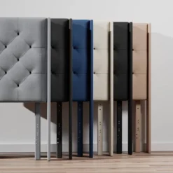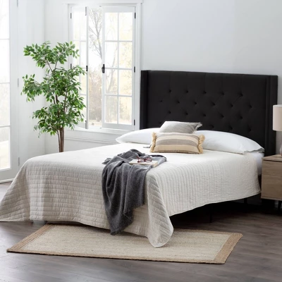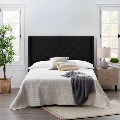 Create a classically modern or a modernly chic look for your bedroom with the Eva Low Profile Wingback Headboard. With a gorgeous linen inspired fabric finish, traditional buttonless tufting, and a classic wingback design this headboard will instantly transform your bedroom into a space you love to call your own. It sits at 54.5 inches tall and comes with modification plates to easily attach to your bed. Find these convenient modification plates, plus all other parts and hardware, in a zippered compartment on the back of the headboard. Choose one of our six neutral colors and get this headboard shipped right to your door. Set it up in under 10 minutes and bring your bedroom to life instantly.Â
