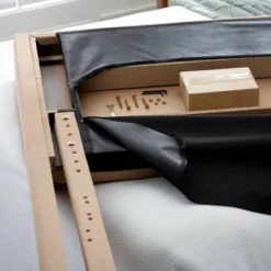 - All hardware and parts are hidden in a zippered compartment on the back of the headboard