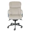 Our high back executive LeatherPlus chair is the perfect compliment to any office. Upholstered with beautiful black LeatherPlus, a combination of leather and polyurethane that promotes exquisite softness and durability, this chair is more than capable of taking comfortable seating to a new level. Additional features include passive ergonomic seating with integrated lumbar support, padded armrests covered in the same elegant upholstery, an upright locking position, pneumatic gas lift seat height adjustment, spring-tilt mechanism, and adjustable tilt tension control.