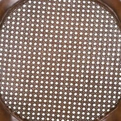 If you want your design to say timeless when you’re dressing your entertainment space then this espresso wood finish counter height stool with arms will make a beautiful statement. Classically designed and very easy on the eye, this stool, boasting soft and durable black LeatherSoft upholstery, will lend your kitchen, dining room, bar or game room an upscale sophistication. Stool features an oval woven rattan back, decorative nail trimming on the seat and gracefully flared legs. The 360 degree swivel seat allows you to swing around effortlessly while the durable wood frame is stabilized with the included foot ring. Spills clean up easily with a solvent and water-based cleaner such as foam while the floor glides help protect your floors and ensure smooth gliding. This stool offers sublime comfort along with class. Additional Features: CAL 117 Fire Retardant Foam, Footrest provides better sitting experience, Plastic Floor Glides protect all flooring from scratches and snags, LeatherSoft is leather and polyurethane for added Softness and Durability, Designed for Residential Use Only