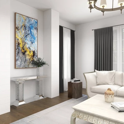- โขConsole table features opulent reflective mirror exterior and base with clear pillars with crystal accents
