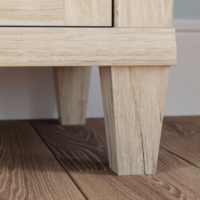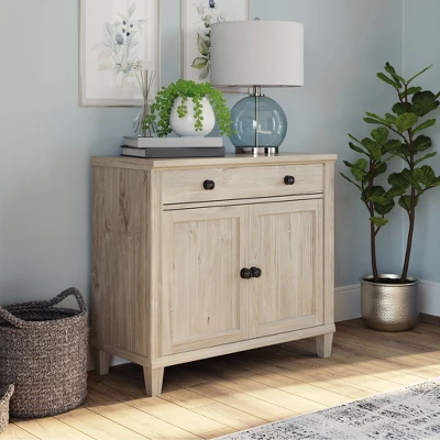 Sometimes our desk can’t hold all of our home office supplies, as much as we try to organize or shove things in drawers. With the library base from the Hammond® collection, you now have more space to store your home office essentials without adding another desk or large credenza to your workspace. This library cabinet is equipped with a durable, 1″ thick top which is ideal for holding a lamp, your work binders, and photos of your family. A storage drawer features full extension slides so your pens, pencils and spare paper are never too far out of reach. Behind the doors of this 2 door base cabinet ‘s doors is a large adjustable shelf to customize for your home office storage needs. This is the perfect place for books, organizing bins and those instruction manuals you keep telling yourself you’ll need again one day. If you’re looking for additional storage and display options, this library base cabinet can accommodate a Library Hutch (428242). Finished in a blonde Chalk Oak and featuring solid wood feet details, this 2 door storage cabinet is the compact but stylish addition to your home office space that you’ve been looking for.