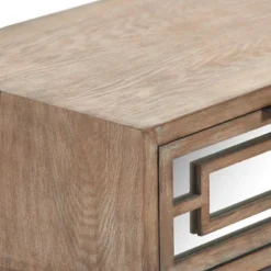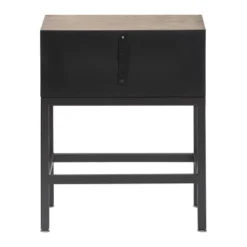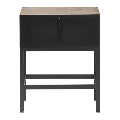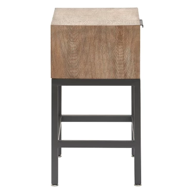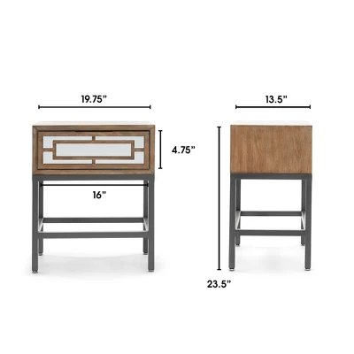 Brighten your bedside with this modern accent table designed by fashion brand Finch. The weathered wood veneer and gray metal stand give this side table a contemporary style that will brighten any living room, bedroom, or office. The mirrored drawer front helps bring more natural light to drab corners and makes small spaces appear larger and brighter. The table has a slim, wall-hugging profile that features a roomy table top and drawer perfect for storing your earbuds, books, magazines and more.