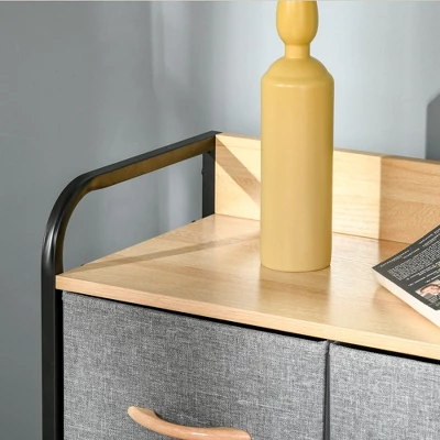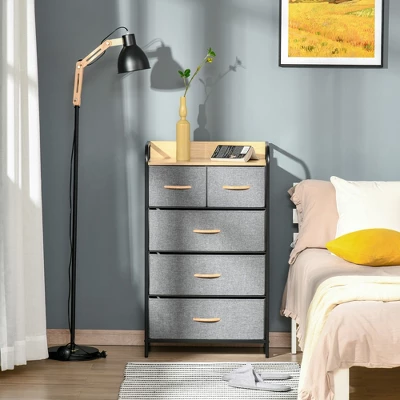 Stay organized without compromising space with this HOMCOM storage chest that includes five pull-out drawers for clothes, scarves, and other accessories. The storage chest organizer is compact and lightweight, making it suitable for small spaces and transportation a breeze. This 5-drawer storage container helps your items stay organized while providing an accent piece and storage solution. Elevate your storage and living space with this HOMCOM fabric dresser.