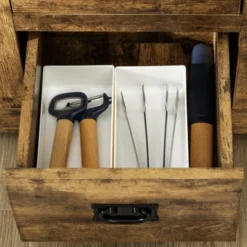 - Storage Solution: The bar cabinet features five drawers, two 2-tier door cabinets to keep belongings hidden and free from dust, and a flat tabletop to display your decorations.