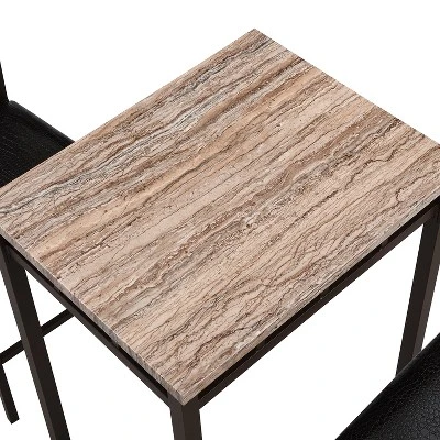 The Home Source Black Eric 3-piece Bistro Set is the perfect multi-purpose solution for practically any space. The table has a beautiful faux marble finish that easily wipes clean and looks effortlessly elegant. Whether you’re looking for extra seating in your breakfast nook or dining room or want to use it as a console table or entertaining station, the Home Source 3-Piece pub Dining Set is sure to become a favorite piece in your home.