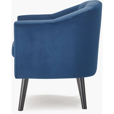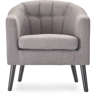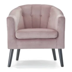 The chic profile of this classic tufted tub chair evokes sophistication in an unpretentious package. The striking flared arm design is a stylish way to update your living room, office, or bedroom. The high quality tufted back is a luxurious finish that offers plenty of comfort and support. Its casual design lends a welcoming feeling and pop of charm to your decor. Either the plush velvet or the soft, linen-like upholstery is destined to become a focal point in your space. Simple tapered wood legs keep the design light and modern, and offer lasting support and durability.