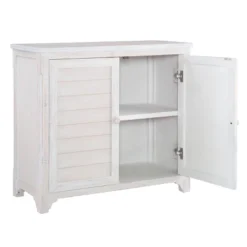 Every day feels like a beach day with this relaxed coastal cabinet. Inspired by timeworn cottages on the shore and sandy towels, the whitewashed finish creates a breezy sun kissed aesthetic sure to lighten things up in your home. The acacia wood framing is covered in a protective lacquer finish and outfitted with carbon steel plated hinges and screws to ensure long term durability, while the sturdy MDF shelf supports up to 50 lbs. This piece arrives fully assembled, ready for your sunroom, bathroom, bedroom or beyond!