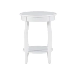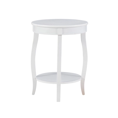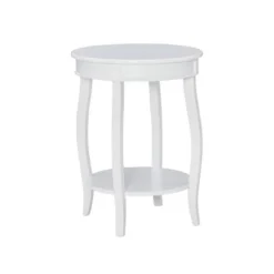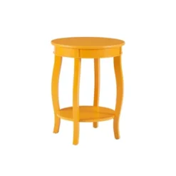 This contemporary round table is a convenient accent for any room of your home. Pair this piece with your favorite accent chair, on either side of your sofa or even as a nightstand beside of your bed. A round lower shelf offers a convenient option for storing magazines, coasters or your favorite books. The cabriole tapered legs can match almost any style or design. Some assembly required.