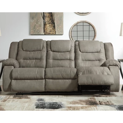 Comfort is yours for the taking with the McCade reclining sofa. Supportive back is plush in all the right places, enhancing your seating experience. Feel-good fabric is elevated with detailed stitching. Rounded sides are fashion-forward and topped with pillowy armrests. With one easy pull, you’re on your way to endless relaxation. Signature Design by Ashley is a registered trademark of Ashley Furniture Industries, Inc.