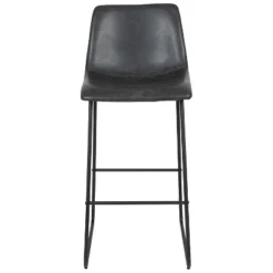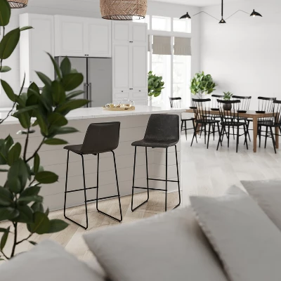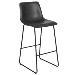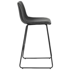 Casual elegance abounds in this set of 2 stylish barstools for your kitchen or dining room. Richly hued dark brown faux leather upholstery gives these bar height stools a sophisticated look that easily transitions from special occasions to everyday use. Mid-back bucket style seats perched atop modern sled base metal legs along with an armless silhouette give this set a slim outline to perfectly accent your décor. Sturdy footrest bracing maintains proper posture while the padded seat and back invite you to relax and be completely present. These on-trend bar stools coordinate well with many popular interior design styles.