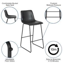- Modern Upholstered Bar Height Stools for Dining Room or Kitchen