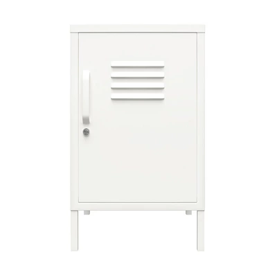 Jump back in time circa 2008 and bring some nostalgia into your home dรฉcor with the RealRooms Shadwick Metal Locker End Table! We all thought that growing up would take longer, which is why the Shadwick is the perfect piece of furniture to add a fun industrial flair to your living room. Please donโt leave dirty Tupperware in these though โ itโs not socially acceptable anymore now that youโve become an adult. Sorry, we know itโs a tough world out there, but at least youโll have this amazing new modern storage solution. In the Shadwick, you can store anything from electronics, books or your larger than necessary inventory of extra candles. The door features a lock so you can keep little ones out of your things. The 2 shelves provide plenty of space for storage no matter where you need it and the wall anchor kit ensures that it wonโt tip over! The RealRooms Shadwick collection includes options in many different sizes and colors to offer the perfect option for you and your home. Each piece of the collection is sold separately.