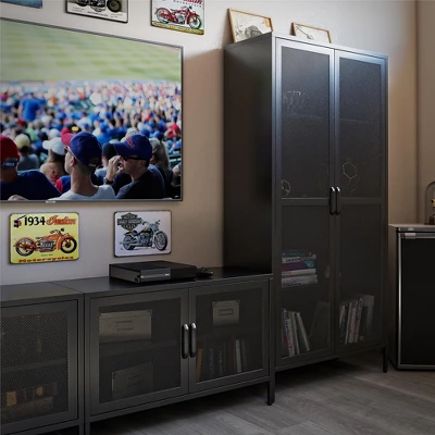 Storage just got a stylish makeover with the Shadwick Collection. Store and stack your way to a more organized living space. The gorgeous Tall Metal 2 Door Storage Cabinet is a throwback on the metal locker design with added modern mesh doors to discretely store books, games, pantry items and so much more. Constructed from powder coated metal, the Tall Storage Cabinet is fitting for the bedroom, guestroom, bathroom, entryway, kitchen, laundry room, living room, den or really any room in the house! The Cabinet ships flat in one box and requires minimal assembly. Two adults are recommended to assemble. Once assembled, the Storage Cabinet measures to be 35.38” W x 15.75” D x 72.83” H.