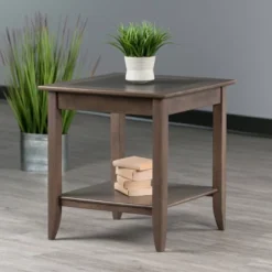 Crafted in a contemporary oyster gray finish the Santino End Table is a classically-styled piece. Features a wood inlay in a darker gray tone that adds depth and distinction. A versatile accent table, it blends effortlessly with any decor from rustic to modern. Use it as a companion to a sofa or armchair in the living room or to hold a lamp by the bed. A spacious lower shelf is ideal for nighttime reading material or stowing personal electronic devices. Softly-finished edges on the tabletop and tapered legs present a simple and elegant silhouette in any room. For larger beds, sofas or rooms, try adding one accent table on each end and coordinate with other furnishings from the Winsome Santino collection for a cohesive look throughout your home (each sold separately). The table frame is made of solid wood with the contrasting inlay constructed of composite wood with veneer overlay for long-lasting beauty and durability. Conveniently packed and shipped in 1 box that includes the hardware necessary for assembling. Replacement part request can be submitted directly to the manufacturer within 60 days from date of purchase.