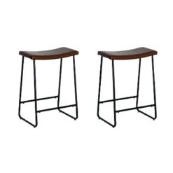 Elevate the style of your kitchen with the ACEssentials Easton Saddle Counter Stool. This sleek stool’s modern industrial look instantly upgrades your counter seating. The backless design lets you easily store this piece under your table when not in use and keeps sight lines open for an open concept home. For a contemporary look, the design features dark brown faux leather PU with distressing and sleek, matte black metal legs with a comfortable footrest bar. The sculpted saddle seat conforms to your body and ensures this stool is a relaxing place to sit for hours at a time while chatting with family and friends. Measuring 13.78″ x 17.13″ x 24.8″, this stool brings a decorative flair to your kitchen counter or island that is sure to catch your eye.