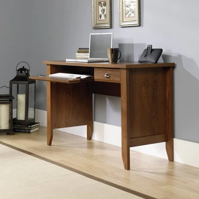 Whether it’s working on a big project or just simply writing out your grocery list, you need the perfect place to do so. Create a convenient work spot in your home with the versatile design and charming good looks of the computer desk from the Shoal Creek® collection. This home office desk offers a spacious top surface that provides you all the space you need for your desk essentials like notepads, your laptop, and a cup full of pens. You can also find a place for items like an accent lamp and photos of your family and friends. This writing desk features a flip-down molding that reveals a slide-out keyboard/mouse shelf that opens and closes on smooth metal runners. Its simple style and versatile design make this computer desk a perfect fit for any room in your home – your office, the living room, or even in the bedroom. Finished in Oiled Oak® and detailed with attractive hardware, this office desk is everything you need!