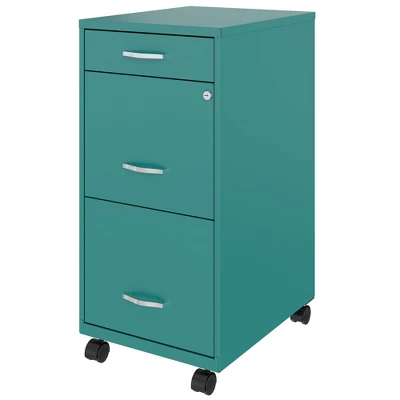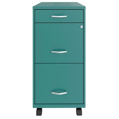 Holding all your important documents, the 3 Drawer Mobile File Cabinet by Space Solutions gives you some peace of mind by securing your sensitive files.Compact and designed for smaller office spaces, the cabinet is sure to fit in your home office, perfect for home file organization. Ample storage space and patented glide suspension make for easy storage and transportation of documents. The 4 rolling wheels let you maneuver the files wherever they’re needed with ease. A built-in cam lock secures the 2 top drawers, ensuring your sensitive documents are safe from prying eyes. Each drawer opens to 3 quarters of its full length for easy access to the interior. Built with 2 large drawers and a top pencil drawer for 3 drawers in total, the cabinet holds letter-sized hanging files, efficiently organizing tax and legal documents, paperwork, and other items.Perfect for home offices and smaller business spaces, secure and store all your sensitive documents in the Space Solutions 3 Drawer Mobile File Cabinet.