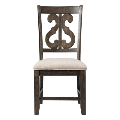 The Picket House Furnishings Stone Wooden Swirl Back Side Chair Set will be the new standout in your dining room! The back of this chair features an intricate, open-swirl back design, making this duo the reason you update your dining room. The seat is upholstered in a dark taupe and is filled with foam cushion to make for a comfy seat.