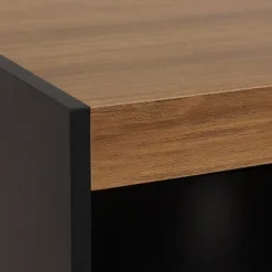 Stylishly show off your TV, consoles, entertainment essentials, and decorative items on this mid-century modern entertainment center. This media console table is sure to complete any living room or entertainment space in your home. The style fits seamlessly with most indoor decor styles. The living room entertainment center is designed to fit flat screen TVs that are 58″ or smaller. Made from medium-density particleboard with PVC legs, this TV media stand is durable enough to last for years. The back of the stand has four holes cut out so you can easily feed wires through to keep them out of sight and to better access power outlets. With a smooth, sliding door covering the bottom cabinet and fixed, open shelves, there is plenty of space to display DVDs, games, books, and decorative items.