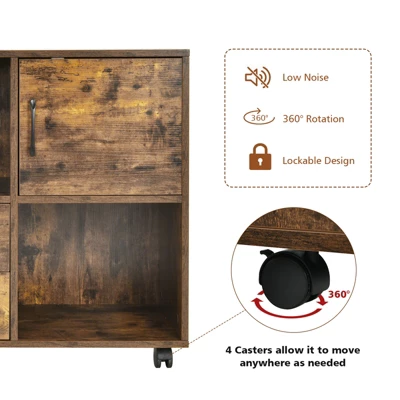 - Versatile & Flexible Features: Equipped with four 360ยฐ swiveling casters (2 of which are lockable), the wood mobile file cabinet can be placed everywhere around your space. Whatโs more, there is almost no noise during the rotation for better use experience.