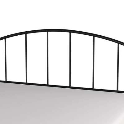 With simple lines and an open, airy design this metal bed with an arched spindle design is the perfect addition to your bedroom. The gently arched headboard and footboard with modest spindle fittings create a sleek profile for an understated style. The classic metal frame is accented by a shiny smooth black finish. Ships in one box; includes headboard, footboard and slat support system. Mattress and box spring required, not included. Assembly required.