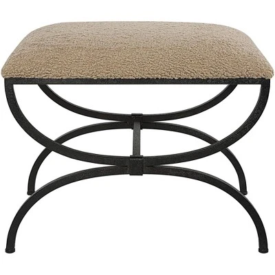 Add some seating style to your decor with the Hacienda small bench. From the Uttermost furniture brand, the design draws inspiration from traditional design and Spanish-style influences. It features a heavily textured iron base finished in an aged black finish topped with a plush faux shearling fabric in soft latte color.