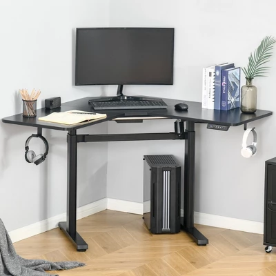 Energize your workday with this standing desk from Vinsetto. Standing at your desk can help you improve your posture, reduce fatigue, neck and back pain, and more. You can set up a monitor, laptop, keyboard, and mouse. There is plenty of room for office essentials and more on this spacious 65.75” x 39.75″ office desk. This adjustable stand-up desk accommodates different heights. Pick from 4 height levels, and the automatic memory function will register your preferred desk height.