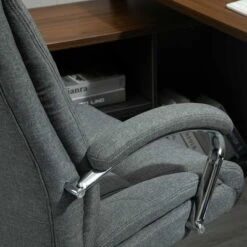- COMFORTABLE DESIGN: The backrest of this office chair is covered in linen-feel fabric with a thick sponge padded seat and armrest for a soft and comfortable feel while working from home.